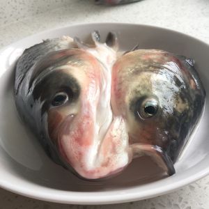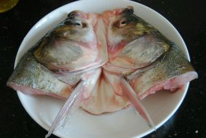 胖头鱼很大,首先淘宝了一个十寸的盘子。 新鲜的胖头鱼头买回家洗干净,把鱼肉上的黑膜弄干净。