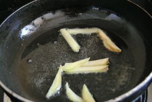 20分钟后,把之前爆香过姜丝的茶油烧热