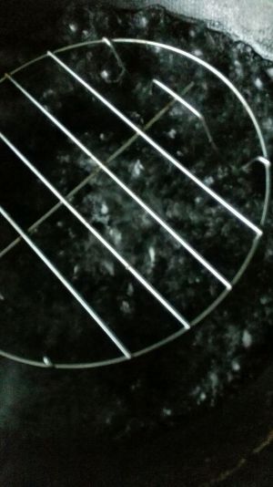 倒入剁椒,小米椒,蒜末,姜末的碗内,爆香