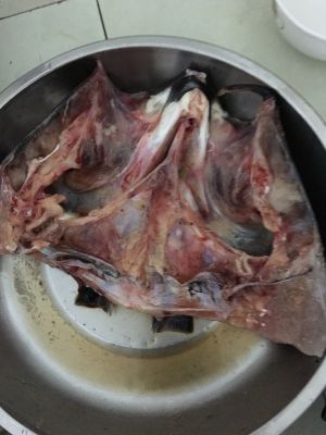 先将剖好洗净,把鱼头斩下,从中间剖开,放盐和料酒腌制半小时