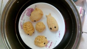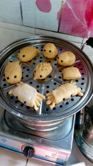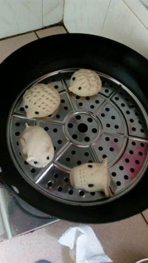 捏好后放置5到10分钟开火蒸,蒸十到十五分钟出锅