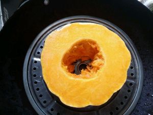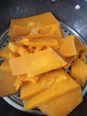 首先,把南瓜去皮蒸熟放温