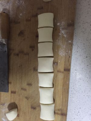 多揉一会面团,然后取一小块(根据你的案板大小)搓成长条,剁成小块,揉成馒头。
