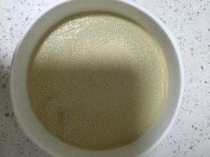 乘半碗温水,不烫手为宜,倒入发酵粉。