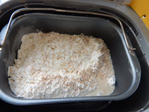 将面粉,白糖,酵母放在碗里