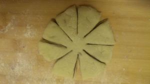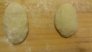 将醒好的面从盆里取出,在案板上撒一些面粉揉面,多揉一会儿的话馒头会比较劲道。我做了一半馒头,一半花卷,共12个。