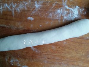 用擀面杖压平后叠一起,一边卷起来。再切小块。再将面团放入蒸锅中,锅中倒入适量温水,盖上盖子,温水发酵至1.5-2倍大。