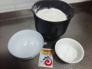 白鲨馒头包子粉+黑米面混合,倒入液体材料;