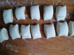做成豆包,用刀割三刀,注意:要割到黄色面团。面团做好要放10分钟,这样蒸出来面软。