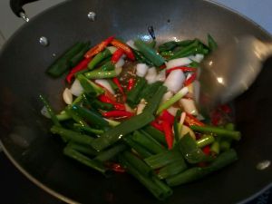 油烧热放入各种佐料,加入龙虾翻炒变色,加入少许料酒和啤酒