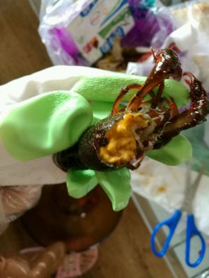 加大量白酒,泡一会,清洗的时候龙虾就乖乖的了。是不是喝醉了。