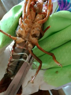 刷完拿水洗几遍,去虾线,虾线捏住尾巴中间那扇,很容易扯出来。扯断了,也没事,拿剪刀开背,牙签挑出来也行。