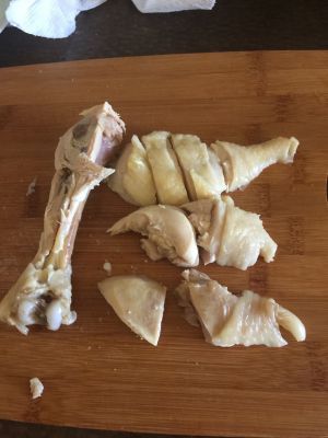 摆盘,骨头垫在下面,鸡肉摆在上面。