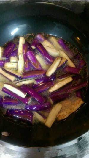 茄子下油锅炸软身