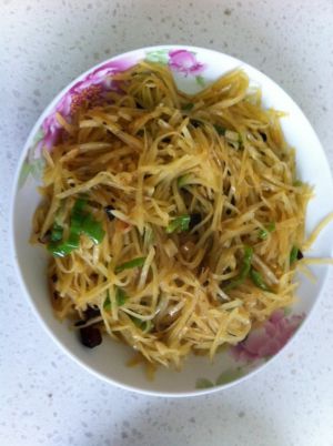 放入切好的土豆丝翻炒,放入盐、味精、白醋。