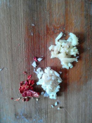 把蒜、姜、小辣椒切碎(不要问我为什么没有葱,因为家里正好没了,哈哈)