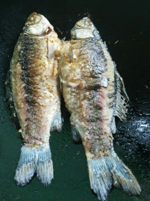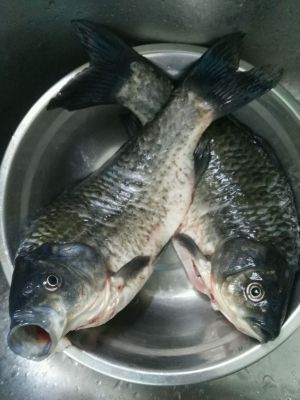 鲫鱼两条,并将鱼清洗干净。特别是鱼肚里的黑膜,弄干净就不会有那股泥土味。