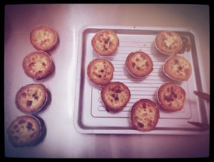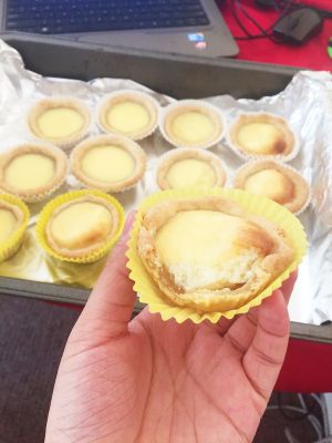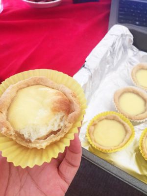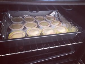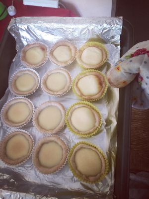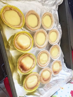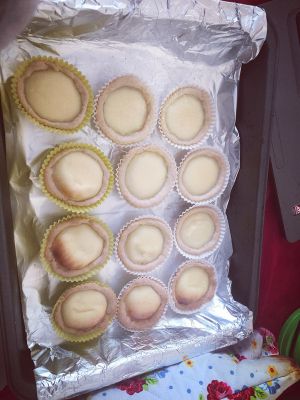 挞水倒进蛋挞皮里,倒满一点好,然后放进烤箱180度25分钟,出来后就是葡挞了;