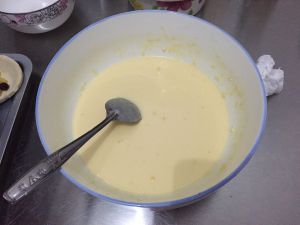 将牛奶鸡蛋液倒入每个挞皮中,不要过满