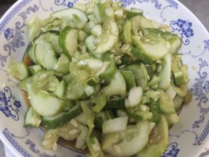 把拌匀的调料放入事先切好的黄瓜一起搅拌均匀.这样就OK啦.一道夏日美食就出炉啦.是不是很简单啊(⌒▽⌒)