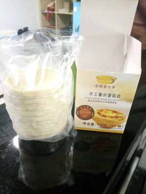 1.60g的黄油放入保鲜袋搞成片放入冷冻,其它的所有料放在一起揉成光滑的面团放入冰箱冷藏30分钟! 2.取出面团擀成片状放入冷冻的黄油放在面前中间两边叠起,用擀面杖擀成长方形面片再叠起来!放入冰箱冷藏20分钟松弛!松弛好的面再拿出来重复刚才叠面重复两次!把面擀成片卷起来,松弛后分成8等份放入蛋挞拖里面,用手一点点撵开运城蛋挞皮!之后加入蛋挞液烤就可以了!用不完的冷冻!