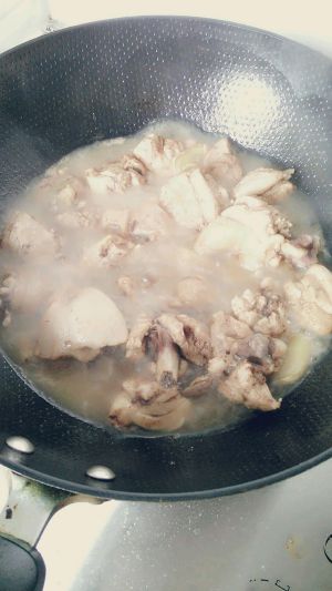 1.先用水把鸡腿煮干,水没过鸡腿!记得放盐!