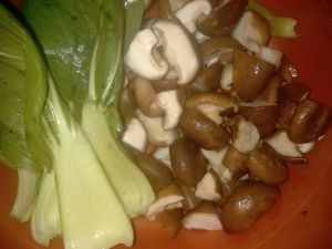 放入油,葱,香菇,油菜,盐,出锅
