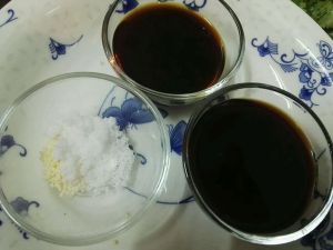 醋(三大勺)酱油(半勺)香油(几滴)!因为酱油是咸的所以要尝过后在放盐!