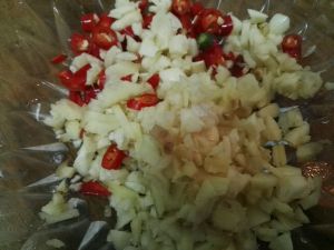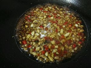 油烧热后,倒入切碎的姜,蒜,辣椒,爆香后加入生抽,陈醋 ,盐,鸡精,