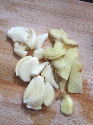 锅里煮爪子的时候,别闲着,拍几个蒜头,切几片姜