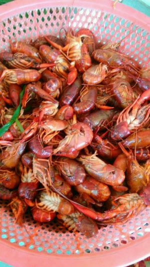 过了一会,小龙虾已经被醉倒,有的还口吐白沫。