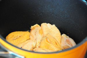 放入鸡翅。