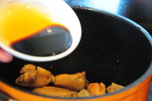 放入刚才腌制鸡翅的料汁。