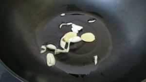 葱姜蒜切丝,锅内倒油后放入切好的葱姜蒜爆锅,