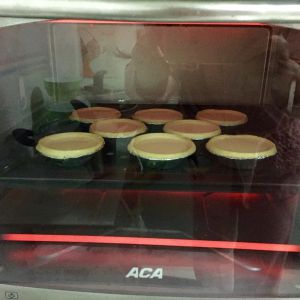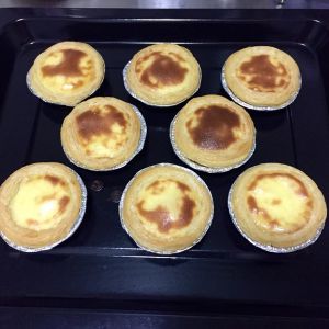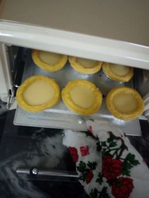 放入预热好的烤箱,上下火200度,中层烘烤15分钟左右,蛋挞表面微微上色即可。