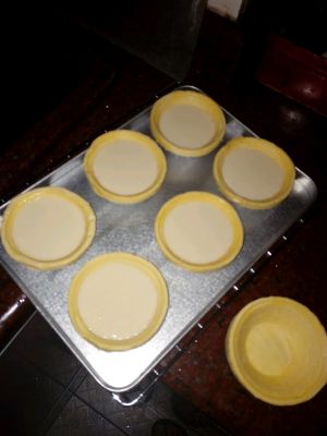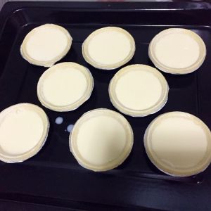 倒入蛋挞皮八分满,用的八个蛋挞皮