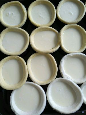 倒入塔皮中,建议9分满,上火230下火210,23分钟便可出炉。 塔皮直径6厘米可倒大约25个。