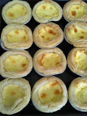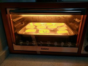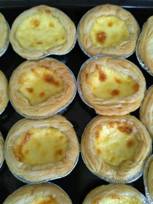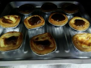 时间快到了,看到葡式蛋挞的表面已经结好,并且有焦了的表皮,很好。