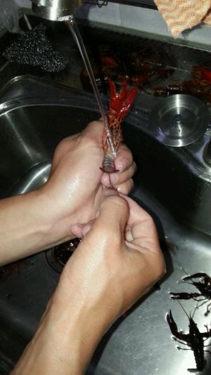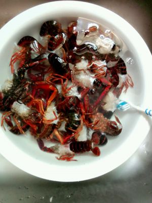 最难的就是清洗。很脏。先泡一两个小时,搅拌一下,强水冲洗。去除头部虾囊,虾线也一定要去掉。腹部用刷子一定要刷洗干净。多刷几遍。