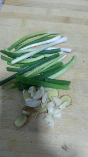 准备调料:葱姜蒜切片、花椒麻椒、干辣椒段、小米辣、八角一颗、白酒、郫县豆瓣、生抽、糖、盐,所有量都按个人口味。