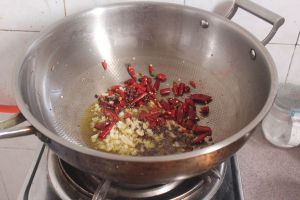 将就剩下的底油爆香花椒,大蒜和干辣椒出香味、