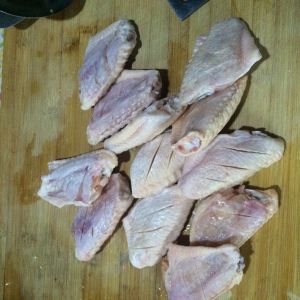用刀把鸡翅上面切开小口,这样更容易入味。