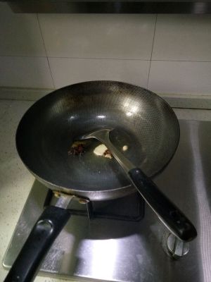 除去大料 放入葱姜爆香 放入腌制的鸡翅炒