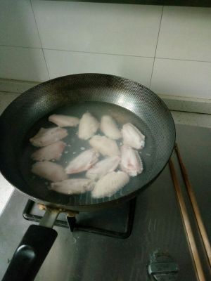 现将鸡翅洗净,凉水下锅,待水开后捞出,在鸡翅表面划2~3小口,便于入味,加入盐,味精,料酒,姜,蒜腌制。然后锅中倒入少许油翻炒,3~4分钟后加入葱姜蒜辣椒大料继续翻炒,加入几滴酱肉着色均匀后,倒入可乐,刚没过鸡翅即可,大火烧开,小火慢炖,待可乐熬下去一半时,搅拌防止糊底,继续熬至可乐干掉,加入香葱,蒜末翻炒几下即可出锅。