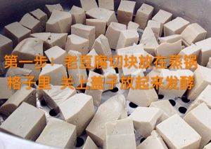 发酵的时间来调馅,豆腐切成片状,再切条,在切小块,这样很容易就切好了