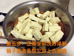 锅里放油,油8分热放豆腐片炸,成金色捞起,