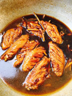等汁快熬干的时候要翻炒鸡翅以免粘锅 汁完全干了以后就做好了