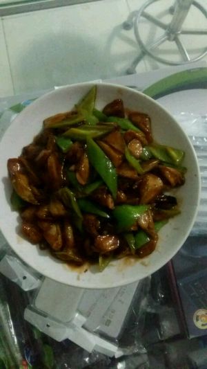 放入炸好的茄子,反炒几下然后加入鸡精和大葱大蒜,就出锅了.