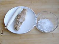 排骨,先用高压锅压制七分熟,最好都选用肋排,姜切3片备用