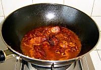 加人油,放糖打起泡倒入排骨,翻炒,加入汤汁,最后收汁